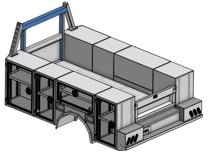 Each body is engineered for efficiency and durability, with options such as integrated tool storage, lockable compartments, lighting packages, generator and crane mounts, and slip-resistant work platforms.